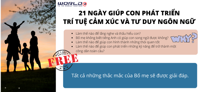 Bên cạnh đó, Học viện WorldE sẽ tổ chức 3 buổi zoom chia sẻ chuyên sâu về phương pháp cũng như giải đáp thắc mắc của Bố mẹ trong quá trình đồng hành cùng con.