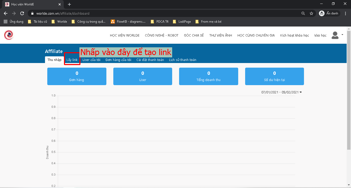 Bước 2: Nhấp vào "LẤY LINK AFFILIATE"